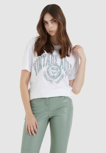 На сайте указаны российские размеры. В этой футболке большую роль играет не только экологичность, но и дизайн. Футболка изготовлена из экологичного хлопкового джерси от Better Cotton Initiative и имеет классический круглый вырез. Принт Vintage Aurel на рубашке из линии Eco Friendly и пигментированная отделка в винтажном стиле сразу бросаются в глаза.