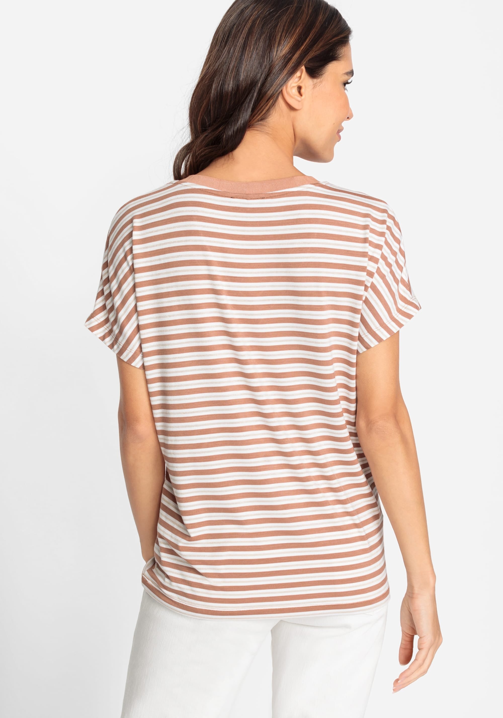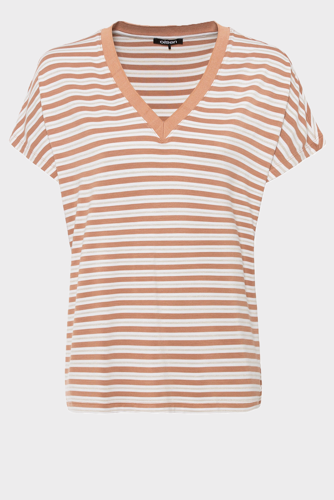 Прекрасная струящаяся драпировка из вискозы с тонким золотым люрексом придает классическим полоскам нотку дневного гламура. Модель с v-образным вырезом и рукавами «летучая мышь».