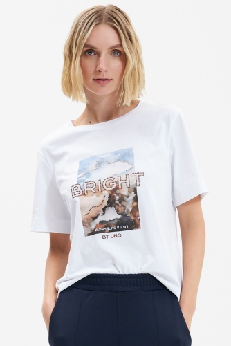 Футболка с арт-принтом с надписью и стразами. Немного укороченная. Длина: 61 см