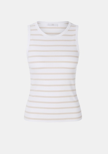 Классика для отдыха: спортивный топ с круглым вырезом и модными полосками — это вневременной универсал, который привнесет свежесть в любой образ. Его можно использовать для создания множества повседневных стилей, а также носить как базовую вещь под пиджаком или блейзером. Мы создали этот топ из удобного эластичного трикотажа в рубчик на хлопковой основе.