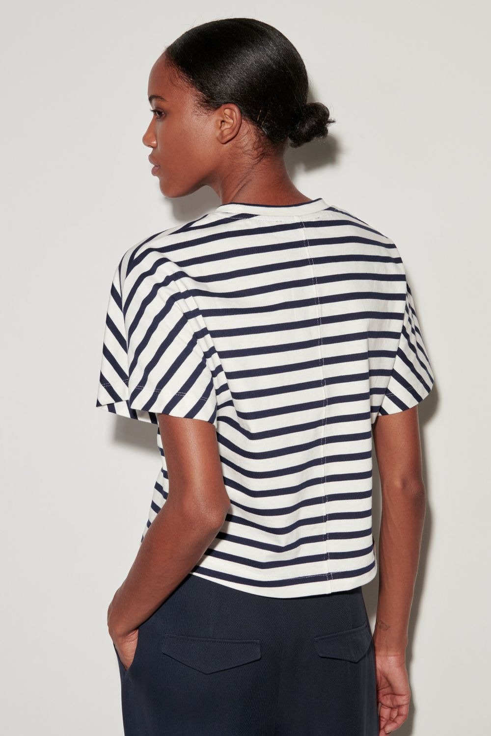 Укороченная хлопковая футболка свободного кроя с круглым вырезом и рукавами «летучая мышь». Спереди имеется крупный принт с логотипом.