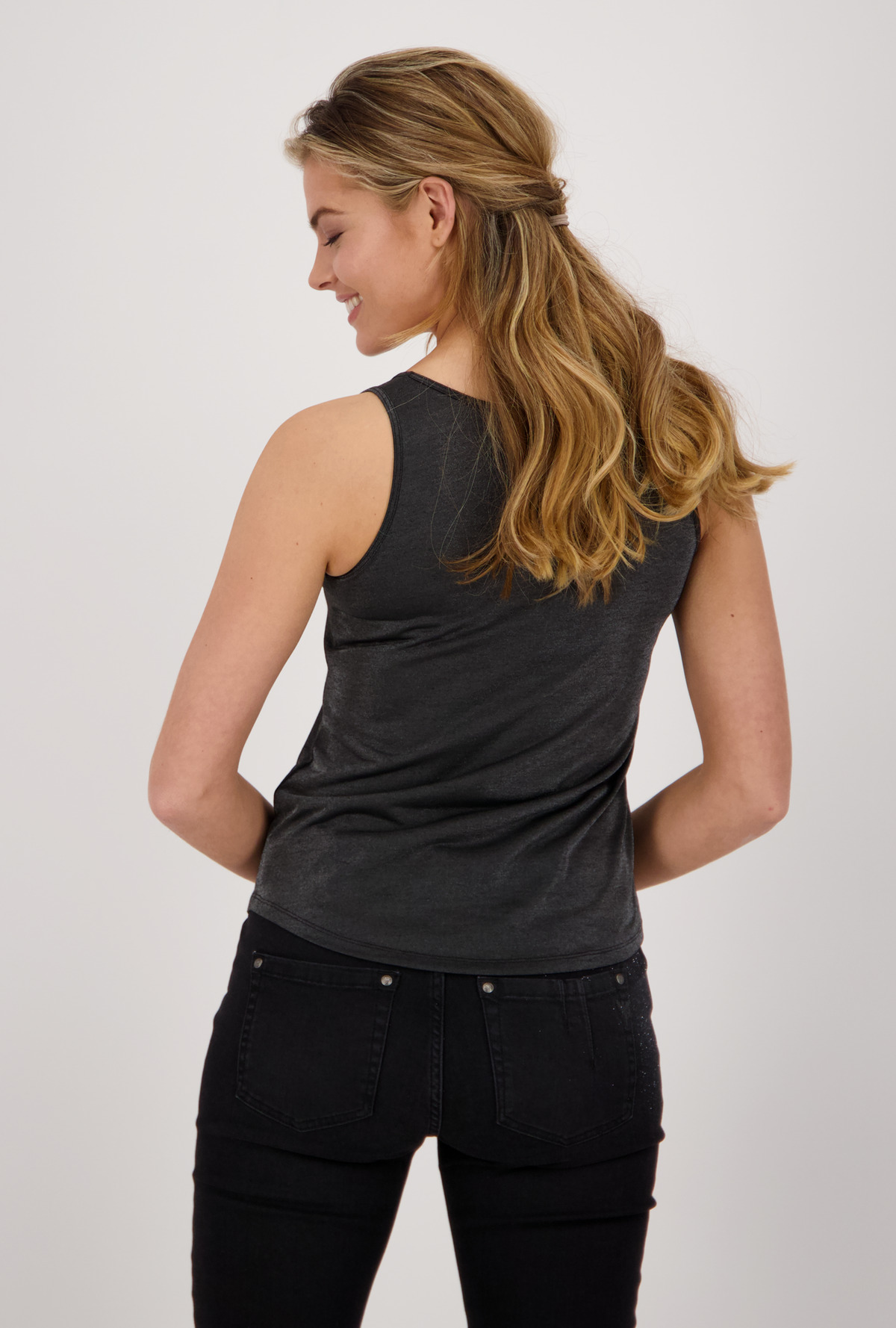 Однотонный базовый топ на широких бретелях - необходимы элемент гардероба любой современной женщины. Материал из смесовой вискозы приятен к телу.