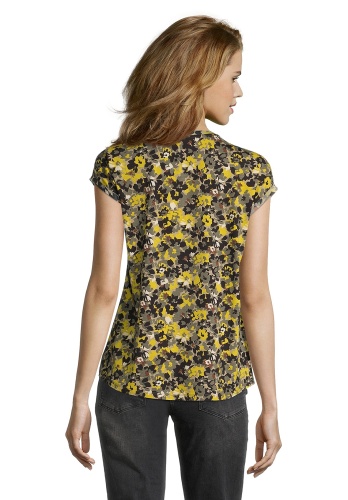 Эта футболка обращает на себя внимание эклектичным принтом с цветочными мотивами. Металлизированные элементы придают легкий блеск. Другие особенности дизайна - свободный покрой, вырез горловины "лодочка", короткие цельнокроеные рукава. Приятный к телу материал из вискозной смеси обеспечивает комфорт.