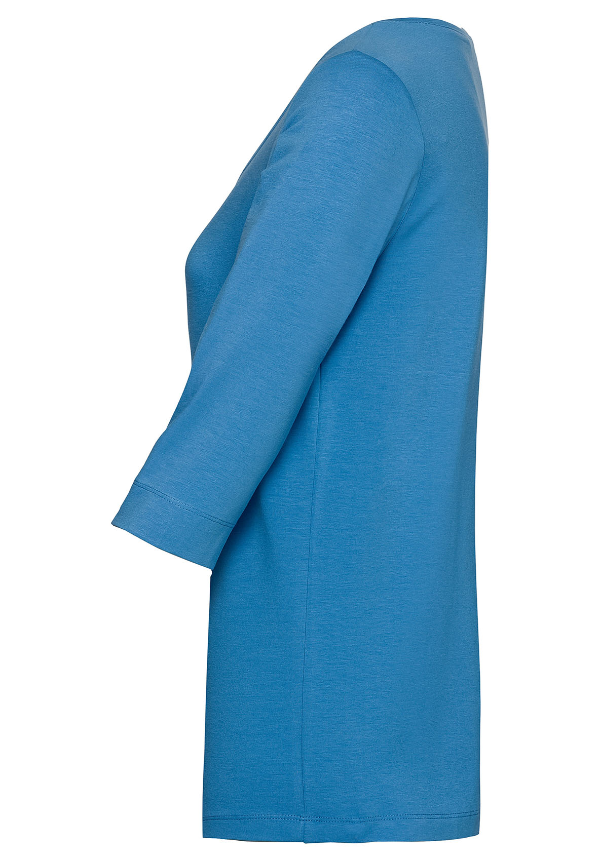 Простая футболка прямого покроя - обязательный элемент базового гардероба. Приятный к телу материал из смеси хлопка, модала и эластана обеспечит комфорт и идеальную посадку. Рукав 2/3 и широкая круглая горловина придают модели непринужденный вид. Эта футболка подходит как для офиса, так и для прогулки.