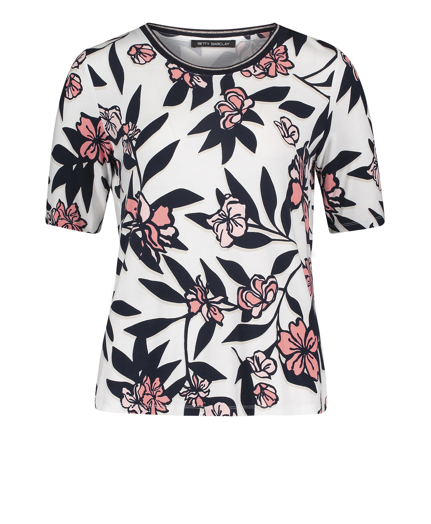 Цветочный принт - непреходящий тренд! Прямой покрой, круглый вырез горловины, рукава 1/2. Вискозная смесь приятна к телу и обеспечивает комфорт. Эта футболка идеально сочетается с любым однотонным низом и обувью.