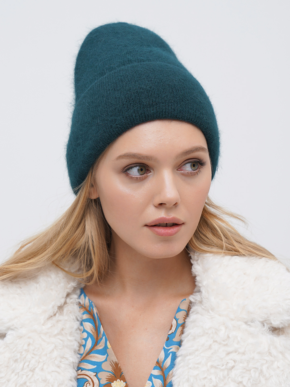 Однотонная шапка-бини из смесовой шерсти ангоры хорошо сохраняет тепло. Трендовая форма, стильный дизайн – шапка дополнит повседневный образ в холодную погоду. Шапка представлена в чернильно-синем и изумрудном оттенке.