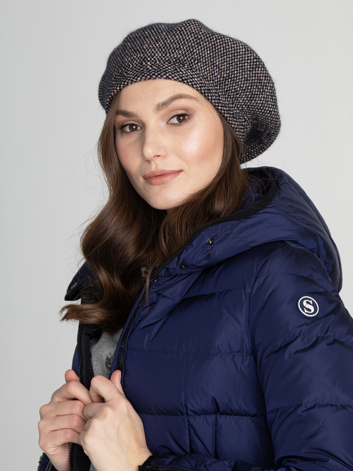 Элегантный берет из смеси шерсти и мохера приятен на ощупь и хорошо сохраняет тепло. Нить люрекса в составе придает акцентый блеск.