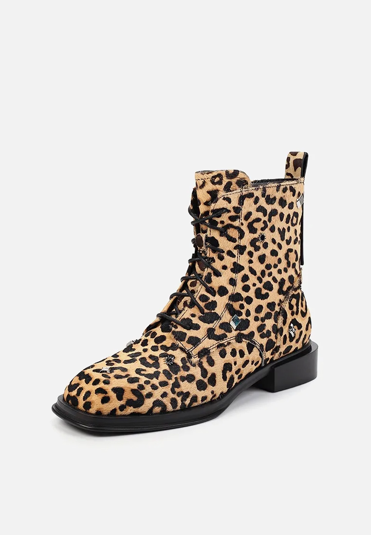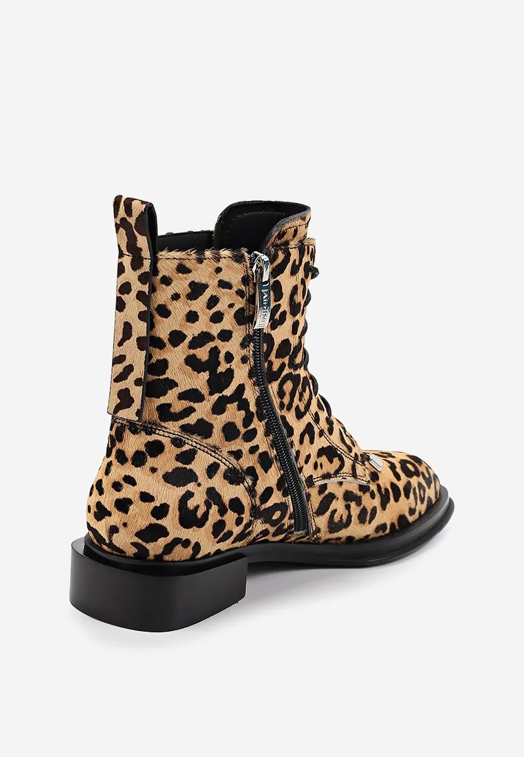 Демисезонные ботинки бренда премиум класса AIDINI леопардового цвета. Пара выполнена из натуральной кожи, утеплена байкой. Ботинки украшены металлическим декором.