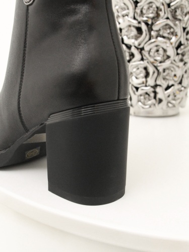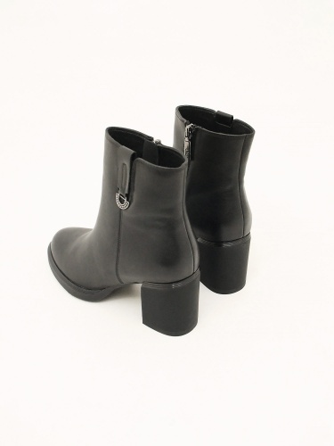 Женские демисезонные ботильоны MYSET из натуральной кожи на подкладке из байки. Классический закруглённый мыс, утепленная подкладка, застежка молния и невысокий устойчивый каблук делают эту модель универсальным элементом базового гардероба.