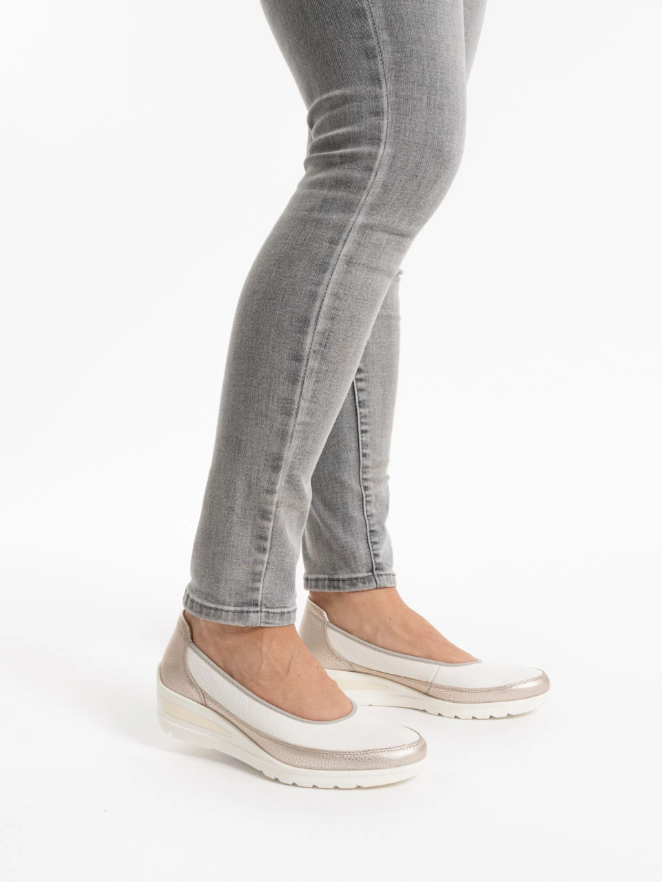Туфли впечатляют своей простой элегантностью и спортивным стилем. Изготовленные из высококачественной мягкой кожи, они не только выглядят изысканно, но и дарят ощущение особого комфорта. Удобная стелька с мягкой подкладкой, которую можно заменить по мере необходимости, обеспечивает индивидуальный комфорт. Благодаря инновационной технологии HighSoft вы почувствуете отличную амортизацию и не будете уставать при ходьбе — идеально для долгих дней. Нескользящая подошва обеспечивает надежное сцепление, а модный каблук-танкетка подчеркивает спортивный характер обуви. Мягкая внутренняя подкладка и оптимальная посадка с круглым вырезом делают эти туфли идеальным повседневным спутником. Их вневременной дизайн легко сочетается с различными нарядами и подходит для самых разных случаев — как повседневных, так и офисных.