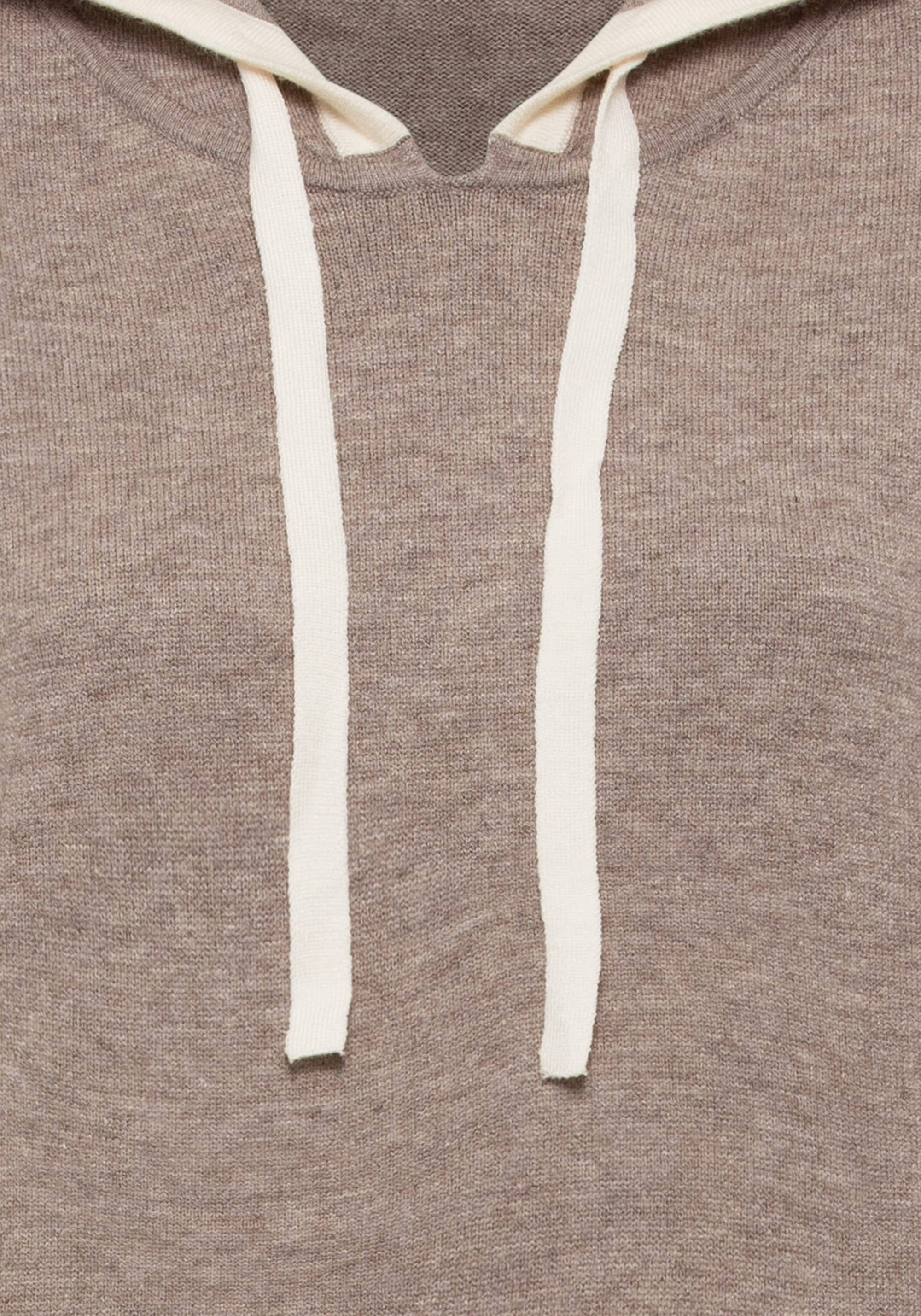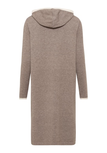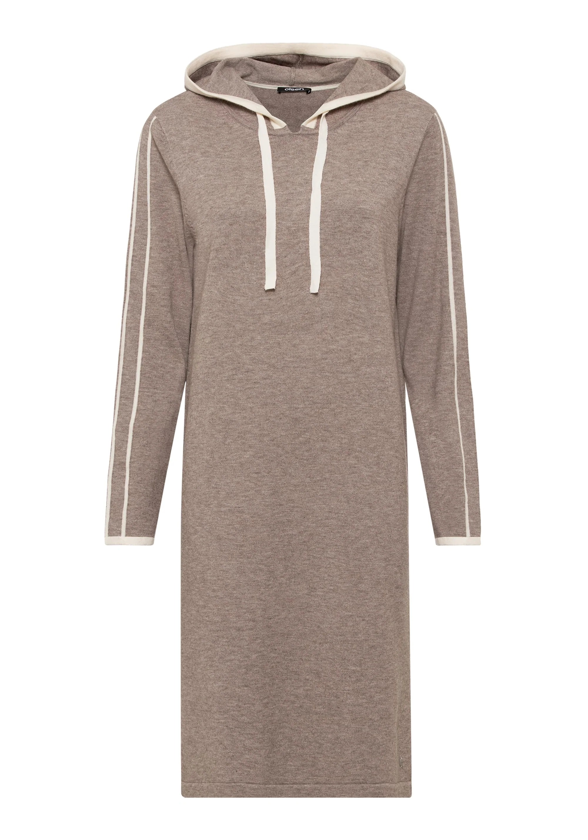 На сайте указаны российские размеры. Платье-свитер, выполненное из мягкой меланжевой пряжи и функциональной кулиской, украшено спортивными полосками на рукавах, придающими изделию особую нотку.