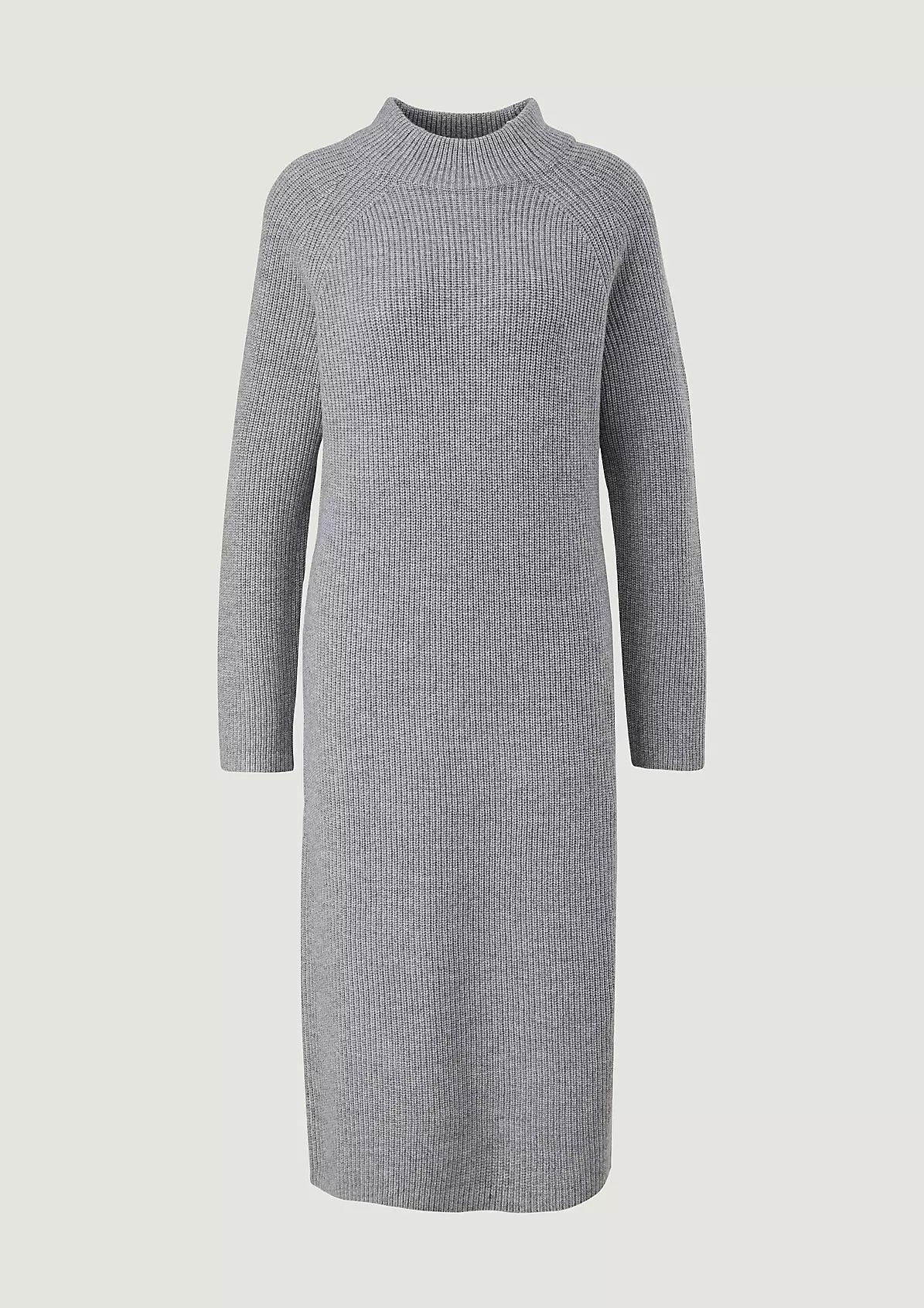 На сайте указаны российские размеры. Трикотажное платье из смесовой шерсти с кашемиром длины миди. Длинные рукава. Подол с разрезами по бокам. Длина для размера 42 около 113 см. Рост модели 177 см.