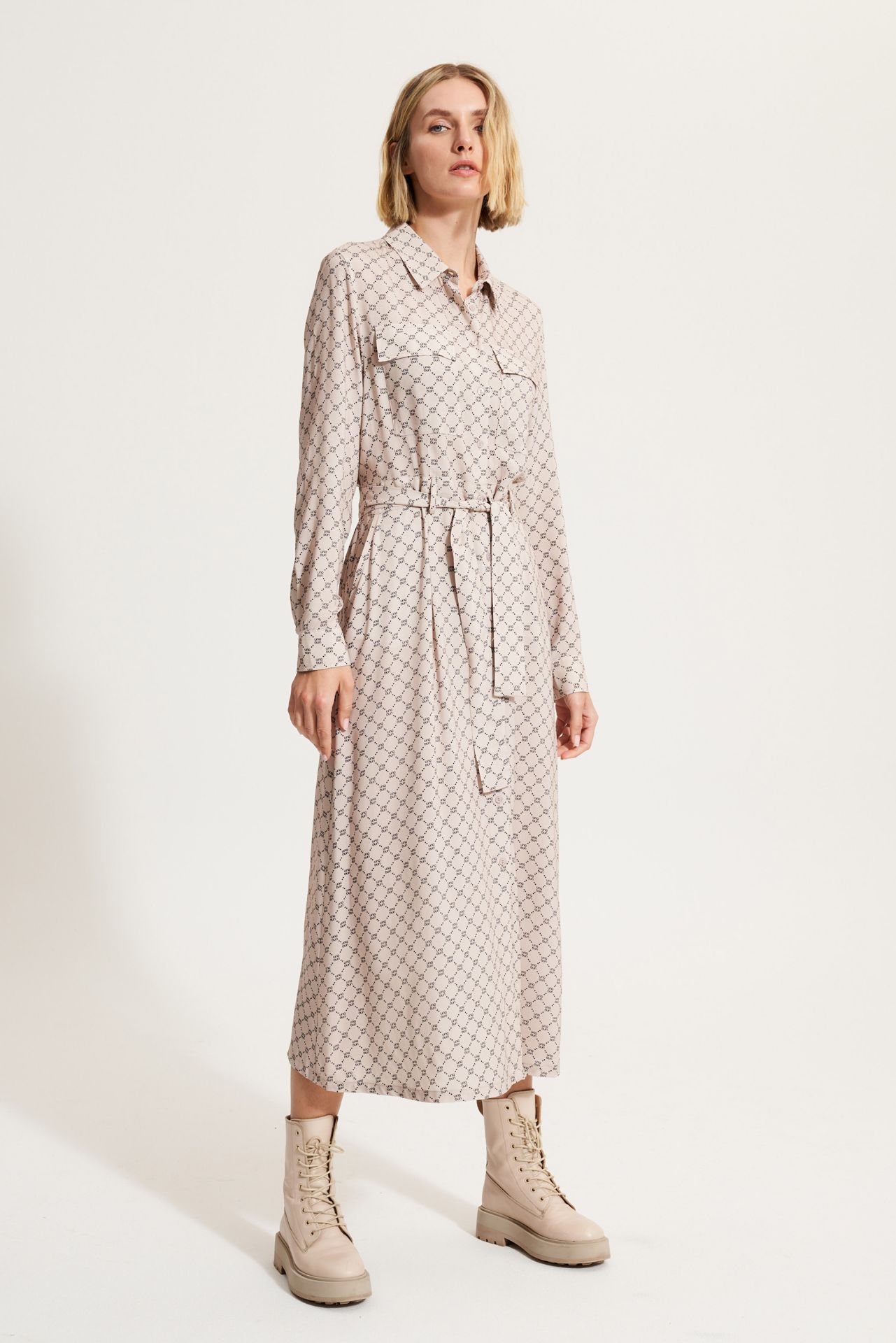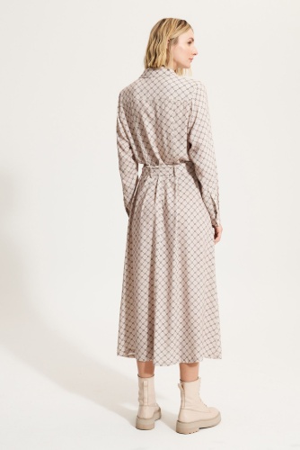 Платье-рубашка с узором. На пуговицах. Поясной шов со складками. Вставные карманы.