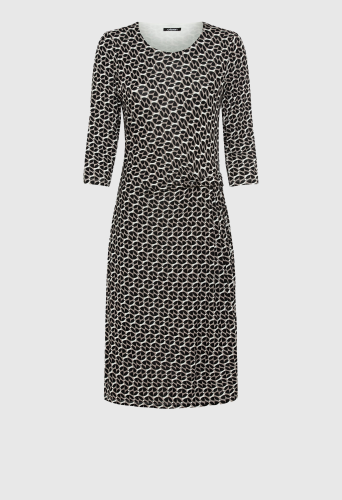 Платье длины миди полностью на подкладке, со сборками на талии, которые подчеркивают фигуру. Высокое содержание вискозы обеспечивает мягкость на коже и приятную драпировку.