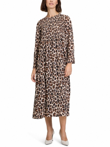 Платье свободного силуэта леопардового цвета.