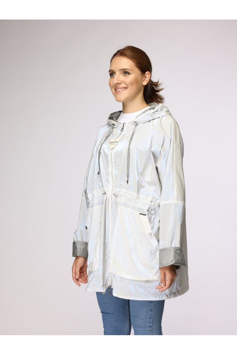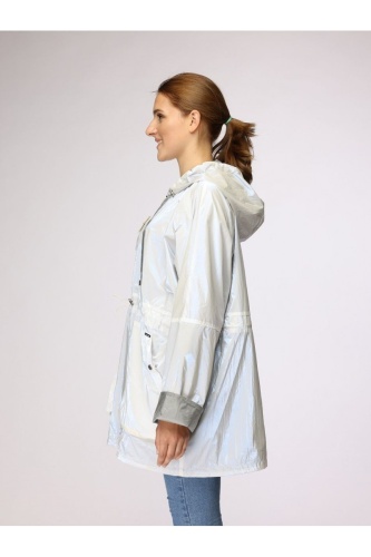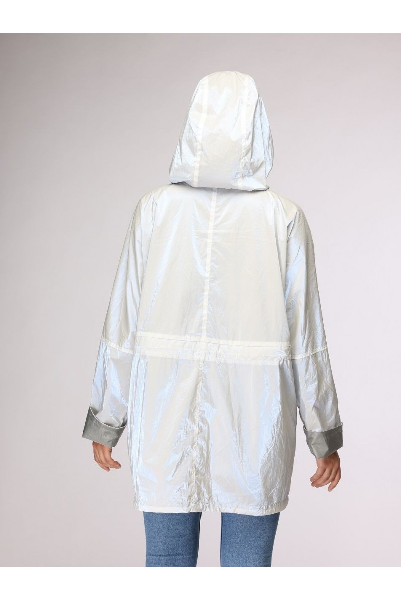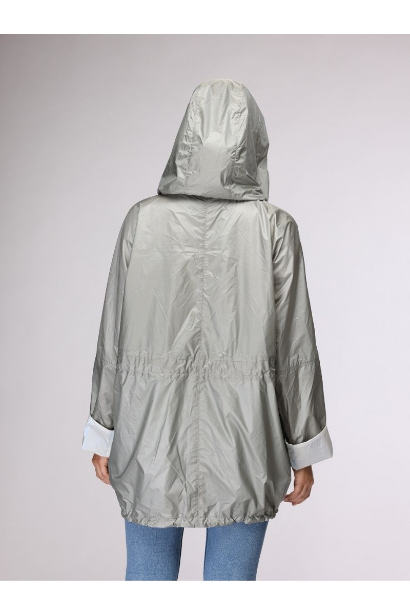 Легкая двусторонняя куртка цвета хаки, которую можно носить с обеих сторон. 2 боковых кармана на молнии. Регулировка по ширине: талия с кулиской.
