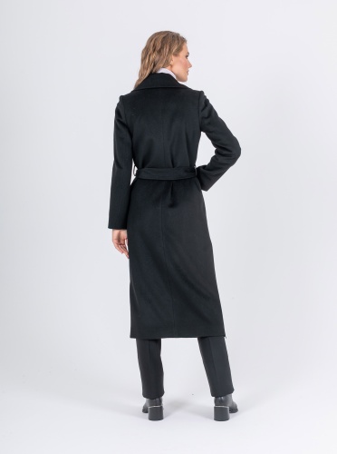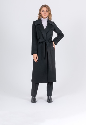 На сайте указаны российские размеры. Офисное строгое пальто из 100% шерсти. Прямой крой, английский воротник, внутренние карманы, на поясе. Вдоль бокового шва с 2-х сторон пальто расположены замки, расстегнув которые можно задать модели изюминку в виде разрезов. Рост модели: 174 см