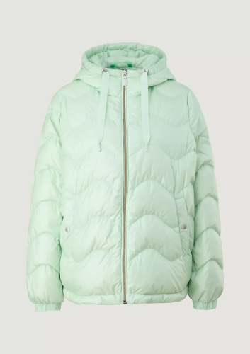 На сайте указаны российские размеры. Короткая куртка с капюшоном и стеганой отделкой. Подкладка: подкладка из тафты. Наполнитель: пух и перья. Длинные рукава, эластичные манжеты. Длина спины: 64 см в размере 42 Рост модели: 178 см