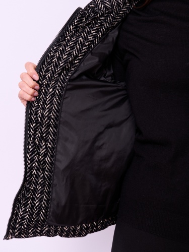 Утепленная куртка из фактурной ткани на молнии с высоким воротом, без капюшона, с длинными рукавами с трикотажными манжетами, прорезными карманами и кулиской по низу изделия.