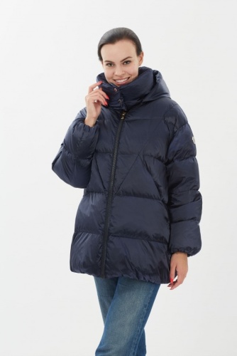 Куртка женская выполнена из водооталкивающей ткани с сатиновым покрытием. Застежка по борту на молнии, карманы на потайных молниях,воротник стойка. Капюшон съемный на молнии. По низу изделия резинка.
