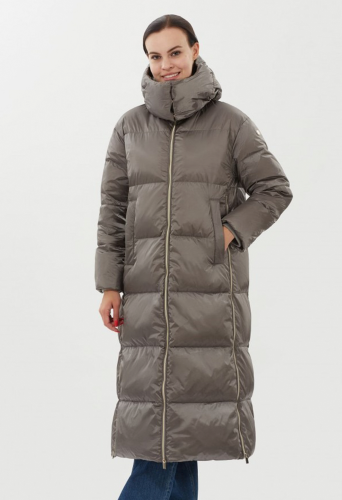 Пальто женское силуэта трапеция выполнено из водооталкивающей ткани с сатиновым покрытием. Застежка по борту на молнии, карманы листочки, по бокам разрезы на молнии. Воротник стойка, Капюшон съемный на молнии.
