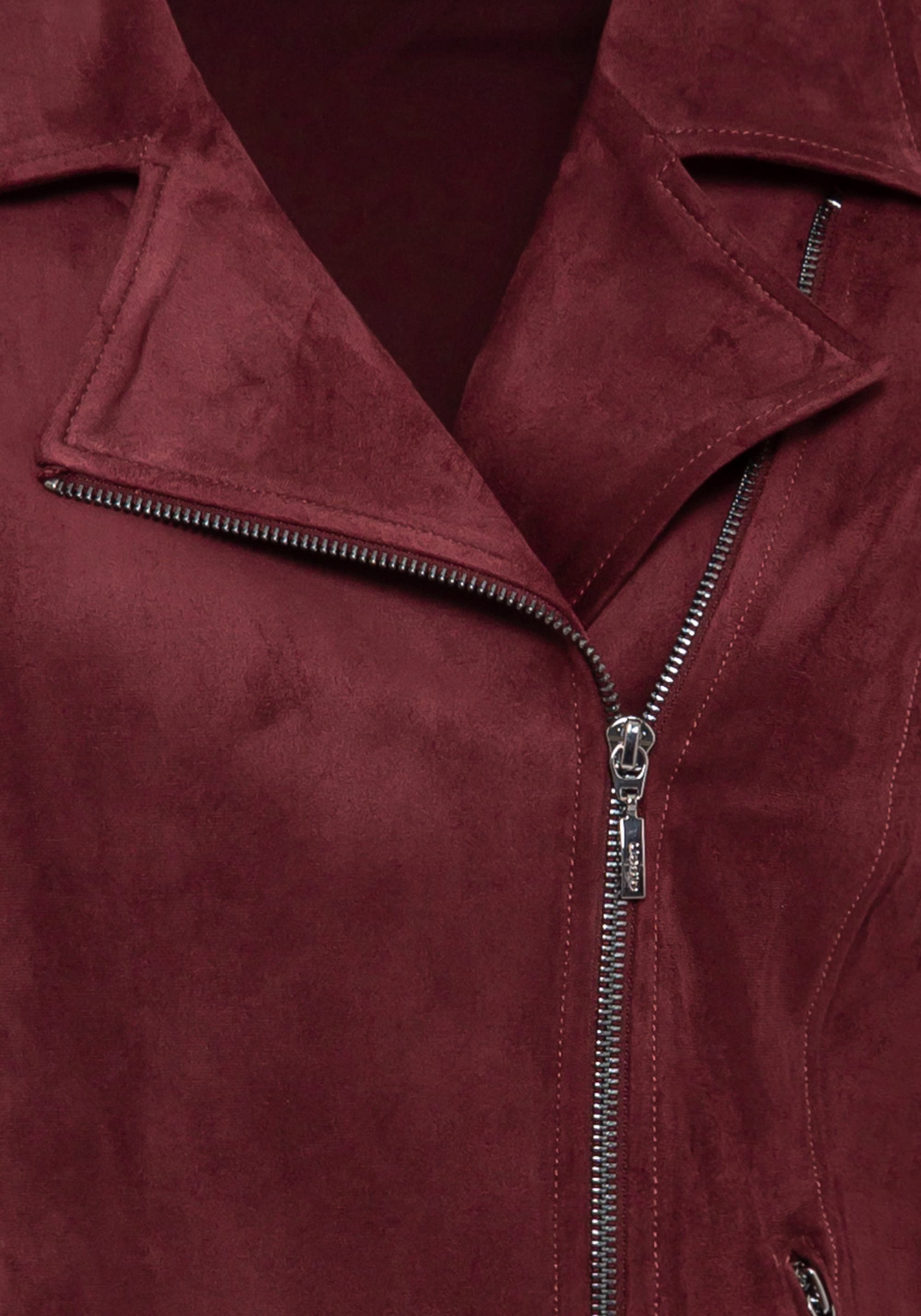 Классическая байкерская куртка из мягкой искусственной замши насыщенного цвета. Он полностью на подкладке с вытачками на талии для придания формы. Имеет боковые карманы на молнии и металлическую фурнитуру.