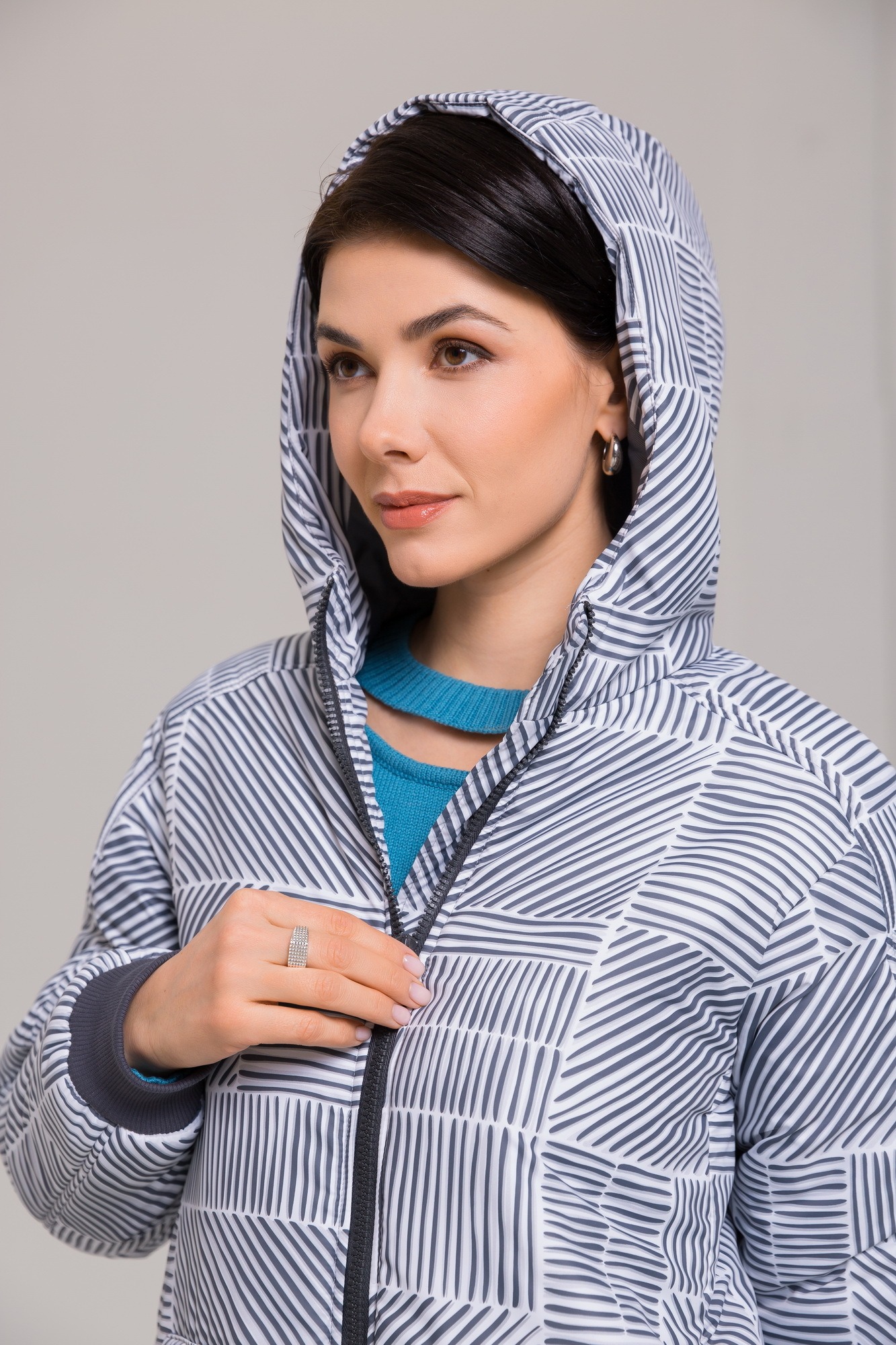 Эксклюзивная модель удлиненной куртки из полиэфира с подвязами по рукавам и низу изделия, что придает ей легкую округлость. Неповторимость - в авторском принте, который нанесен на полиэфир. В изделии использован 100-граммовый утеплитель и двухзамковая молния для удобства.