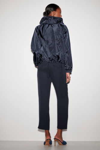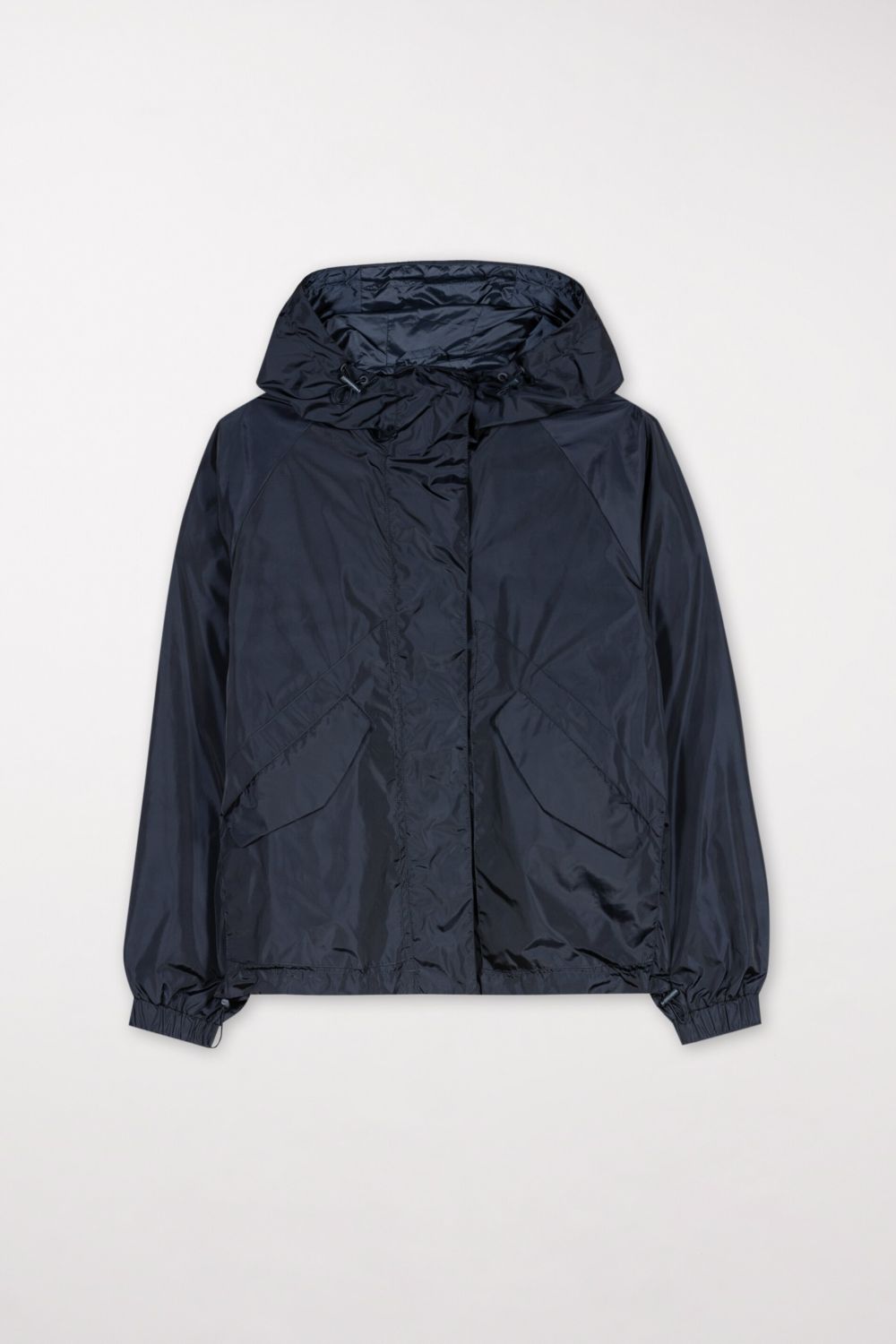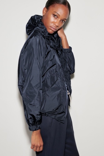 Легкая куртка из слегка переливающейся уличной тафты с фиксированным капюшоном, потайной двусторонней молнией спереди и двумя большими карманами с клапанами. Завязки на капюшоне и подоле позволяют индивидуально регулировать ширину.