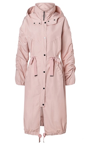 Стильный плащ - идеальная вещь, которая защитит от непогоды! Средняя длина, прямой крой с кулиской на талии. Капюшон, воротник-стойка, застежка-молния с ветрозащитной планкой, длинные рукава на кулиске, проорезные карманы, кулиска по низу изделия.