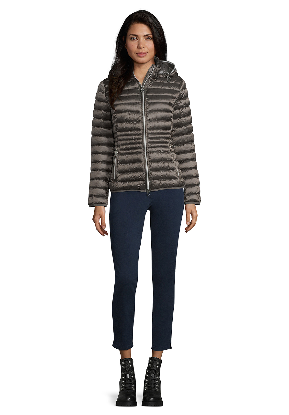 Куртка на облегченном синтепоне - то, что нужно для демисезона! Слегка прилегающий силуэт, практичный воротник-стойка, съемный капюшон на кулиске, удобная двойная застежка-молния, карманы на молниях.