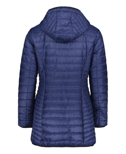 Стеганое пальто на синтепоне - наш модный ответ непогоде! Удобная длина выше колена. Слегка прилегающий силуэт подчеркивает достоинства фигуры. Капюшон на кулиске, практичный воротник-стойка. Карманы на кнопках. Ветрозащитная планка декорирована тесьмой с нитью люрекса, что придает образу нотку гламура. Эта модель - для тех, кто идет в ногу со временем и занимает активную жизненную позицию.