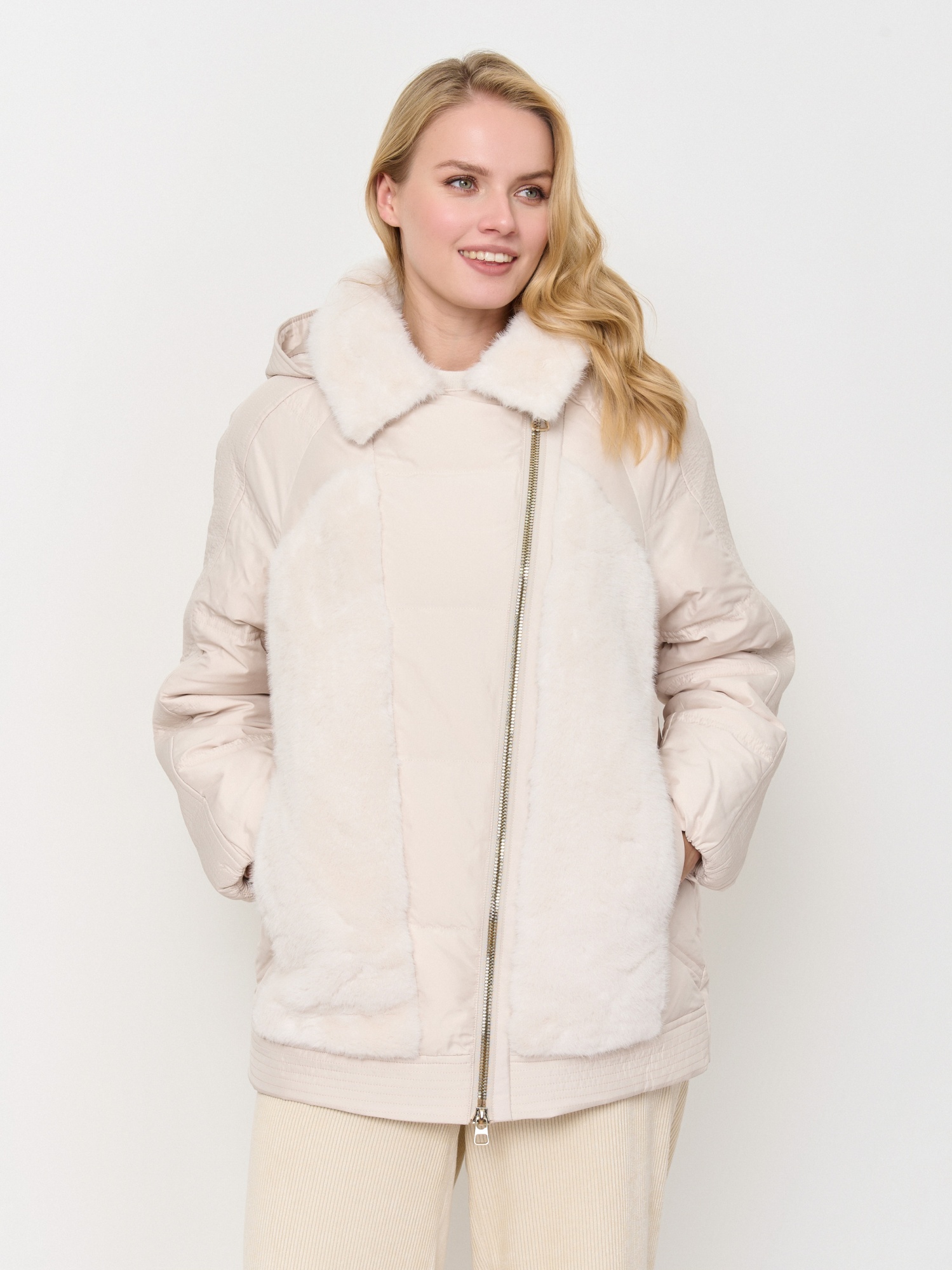 Куртка с отделкой из экомеха создана для комфортной защиты в холодную погоду от 0 до -15°C. Ткань верха: прочный тенсель молочного оттенка; Отделка: экомех «норка» молочного цвета; подкладка - 100% полиэстер; утеплитель - 90% пух / 10% перо. Детали: застежка молния, опции капюшона съемный капюшон, рукава длинные, покрой прямой, без рисунка, утеплитель пух, карманы прорезные, без опушки.