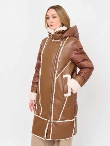 Пальто из экокожи с асимметричной застежкой создано для комфортной защиты в холодную погоду от -10 до -25°C. Ткань верха - экокожа карамельного цвета; отделка из экомеха молочного цвета; подкладка - 100% глянцевый полиэстер в цвет основы изделия; утеплитель - 90% пух / 10% перо. Детали: комбинированное пальто, искуственная кожа и мех, застежка молния, опции капюшона съемный капюшон, рукава длинные, покрой прямой, без рисунка, утеплитель экомех, карманы прорезные, без опушки.