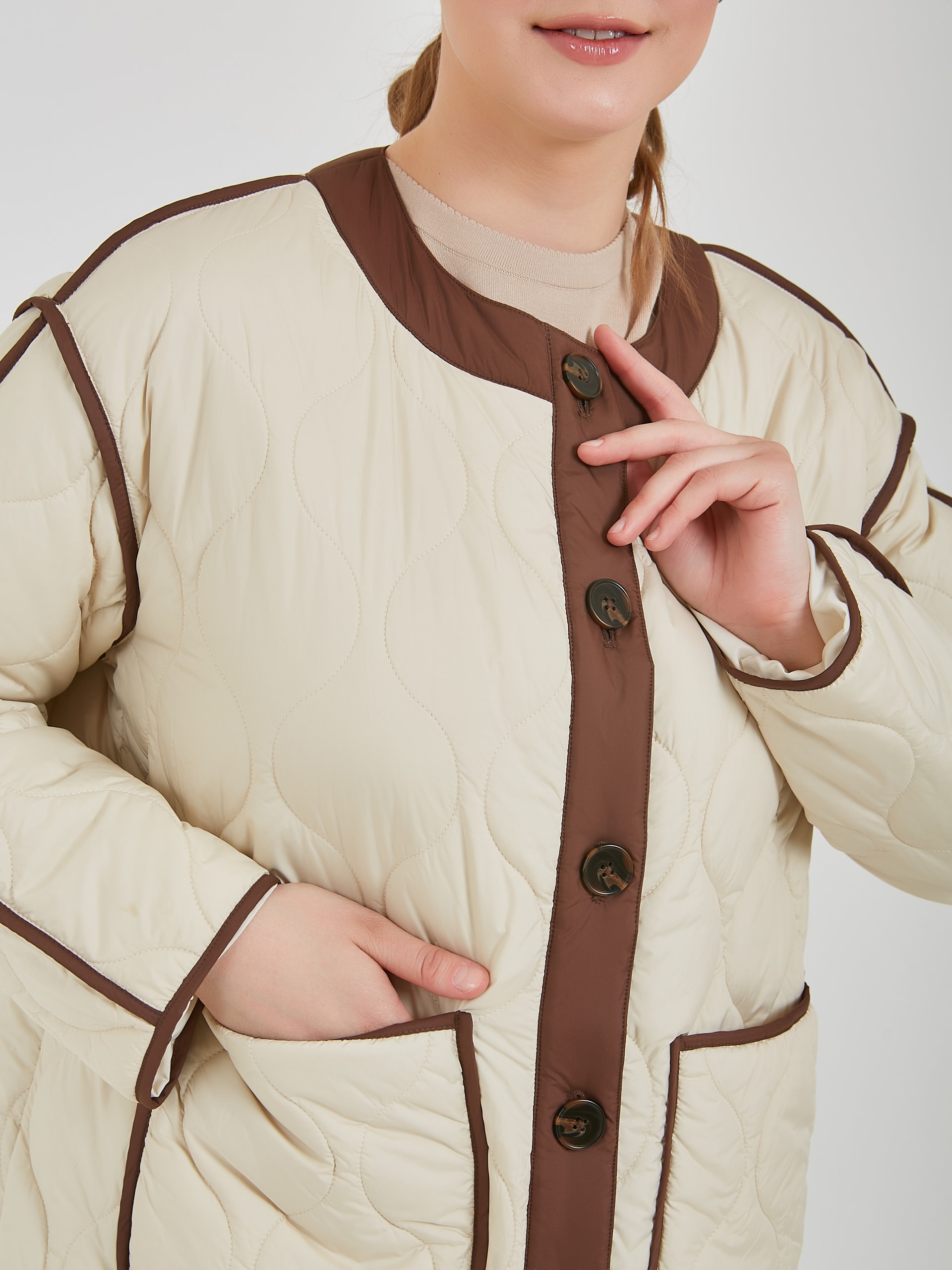 Женская утепленная куртка подарит тепло в прохладные дни. Женская куртка на пуговицах имеет удобный крой, стильный дизайн и практичность, который подходит для создания повседневных образов. Коллекция Весна-Лето 2025. Капсула "Рио де Жанейро". Параметры модели: 95-64-101, рост 175, размер 44-46