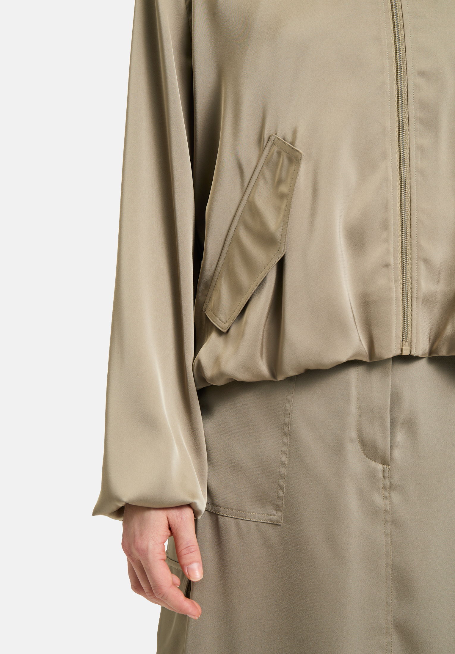 Этот пиджак-блейзер сочетает в себе повседневный стиль и элегантный крой. Воротник-стойка и крой блузона создают современный и модный образ, а застёжка-молния и практичные карманы с клапанами дополняют дизайн. Благодаря однотонному материалу он универсален и идеально подходит как для офиса, так и для отдыха.