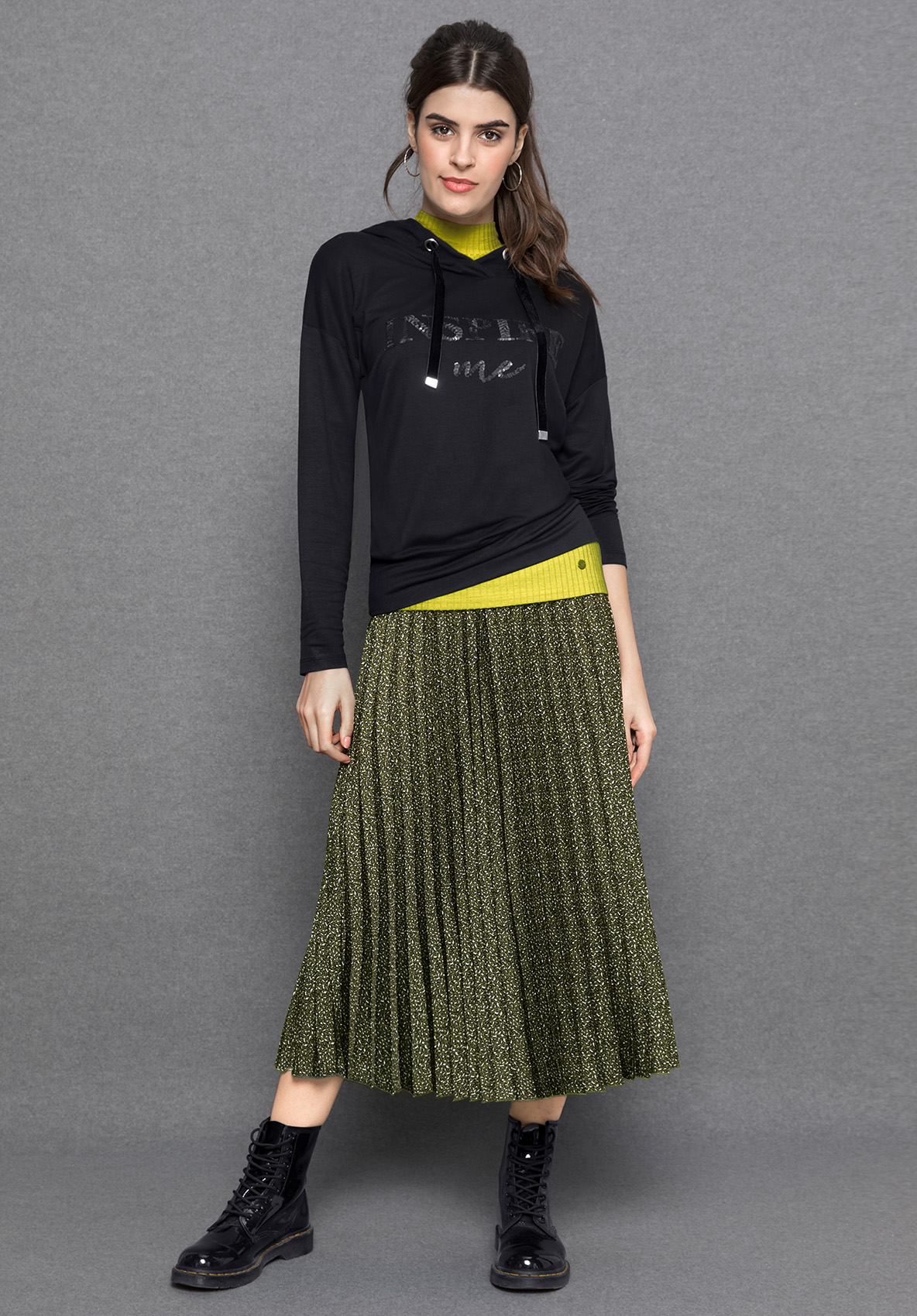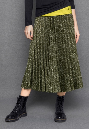 Встречайте новый сезон в любимом наряде с плиссированной юбкой! Юбка длины миди привлекает внимание своим модным абстрактный принтом. Завершает дизайн эластичный пояс черного цвета. Он не только придает юбке изюминку, но и делает ее удобной в носке. Эта модель предлагает вам множество вариантов сочетания в различных стилях, от спортивного до женственного.