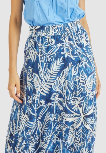 Юбка-макси с тропическим принтом изготовлена из мягкой вискозы. Разрезы в боковом шве по низу и декоративная отделка кокеткой придают образу неповторимость.