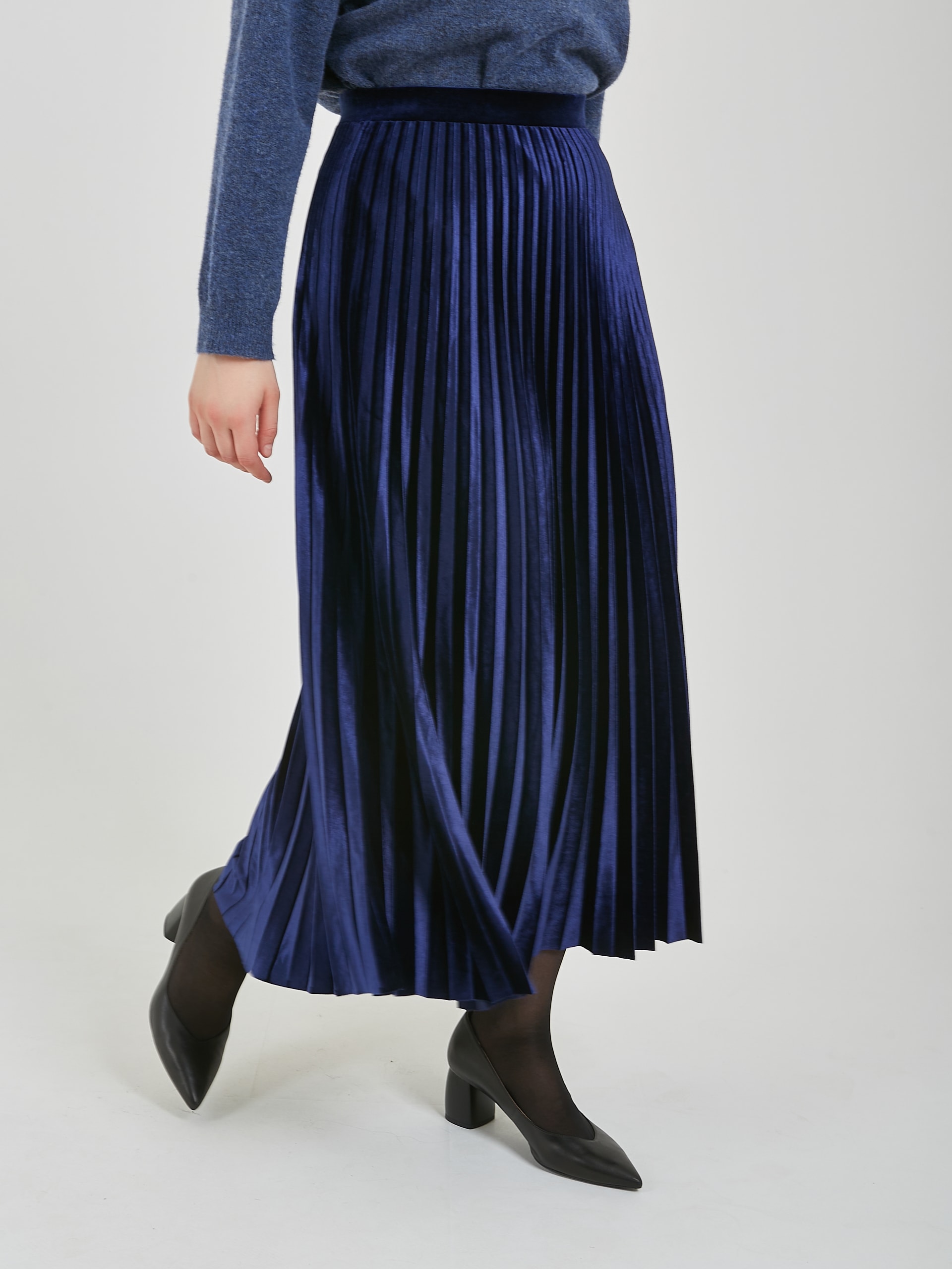 Бархатная юбка плиссе в сапфирово - синем и черном оттенках.