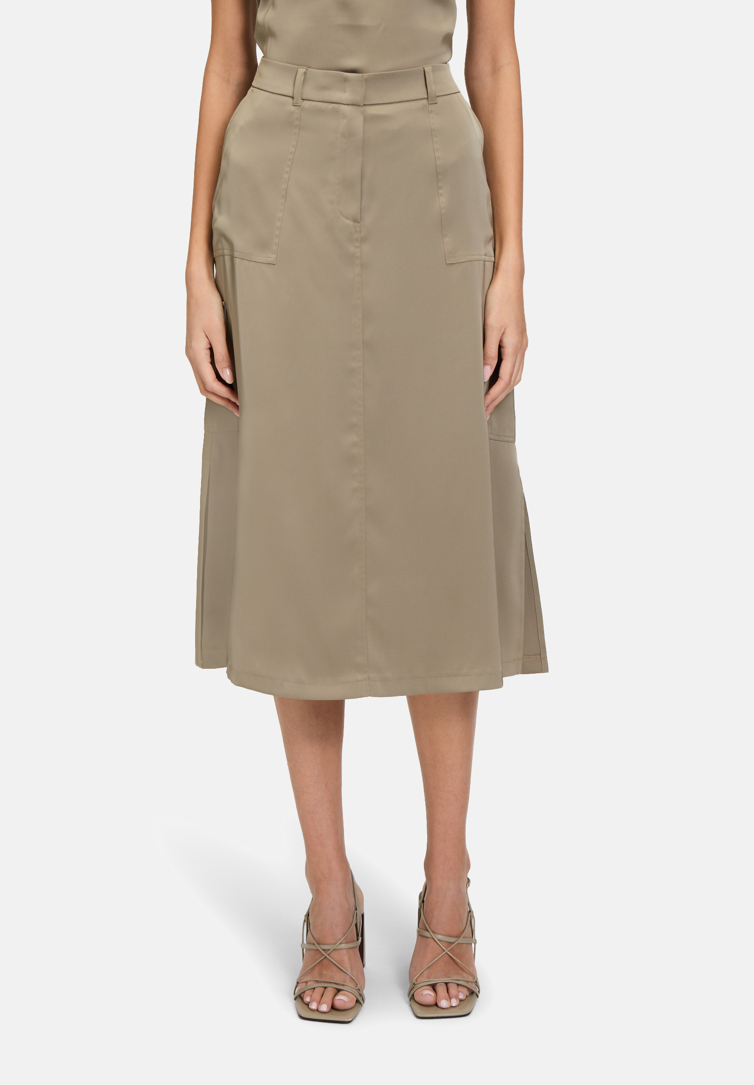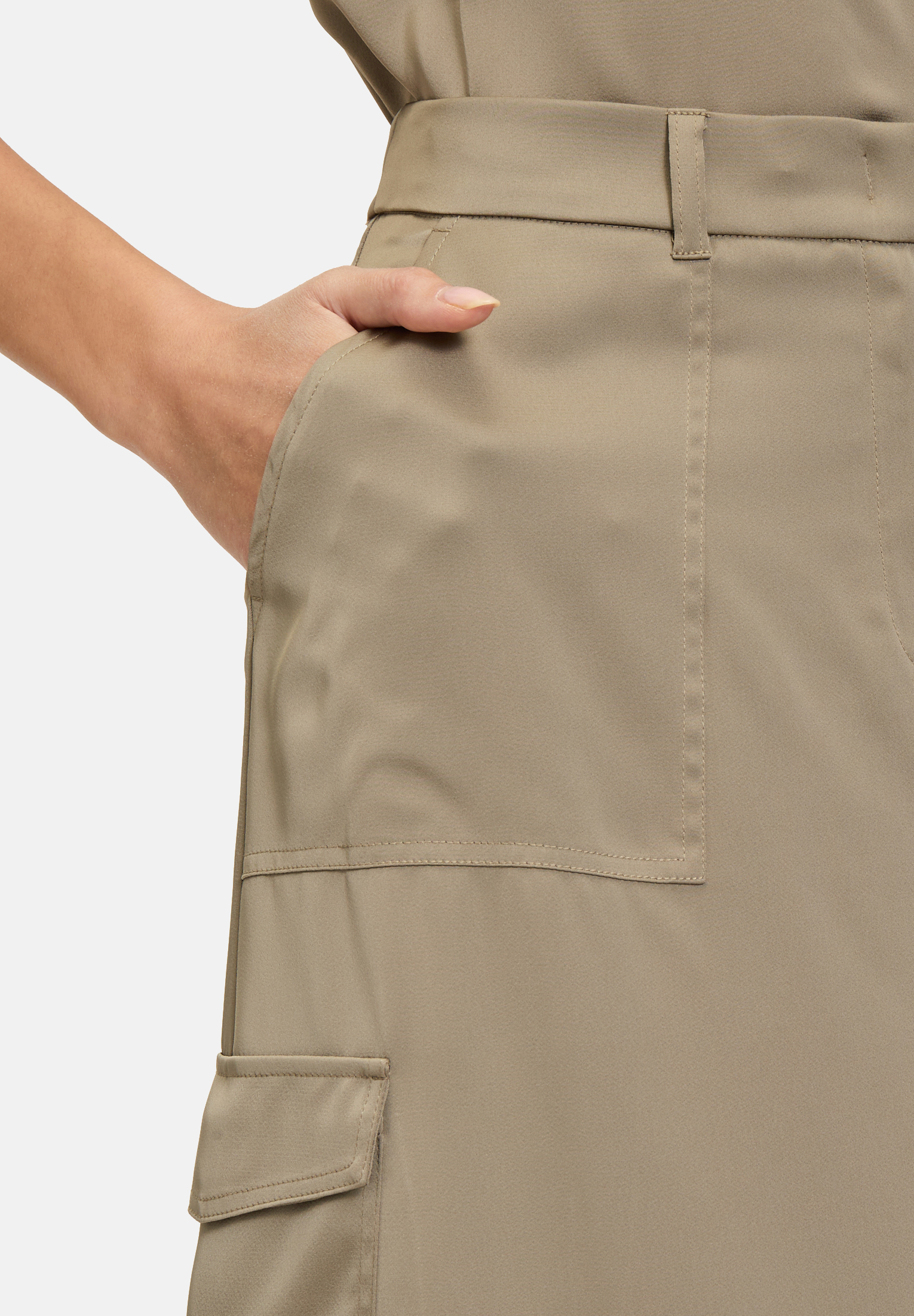 Эта атласная юбка карго-стиля сочетает в себе стильную элегантность и практичность. Современный лаконичный дизайн и изысканные детали, такие как крючки, петли и прочная молния, делают её универсальной. Накладные карманы не только обеспечивают дополнительное место для хранения вещей, но и подчёркивают модный образ.