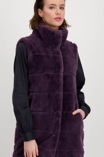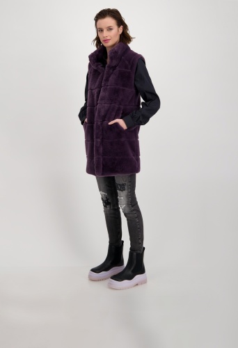 На сайте указаны российские размеры. Длинный жилет из искусственного меха с воротником-стойкой. С приятным мягким жилетом из меха от monari вы сможете создать стильный образ в кратчайшие сроки. Длинная модель прямого кроя с воротником-стойкой, планкой на потайных кнопках и боковыми карманами идеально подходит для создания повседневных образов с платьями и брюками. Модель ростом 179 см.