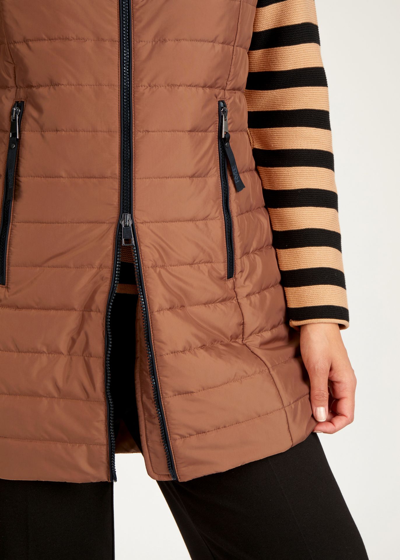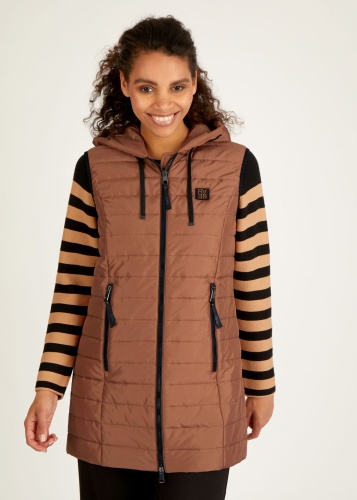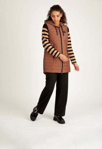 На сайте указаны российские размеры. Этот шикарный стеганый жилет с капюшоном идеально подходит для любого активного отдыха. Капюшон регулируется шнурком. Жилет закрывается на молнию, как и боковые карманы. Прямой крой придает спортивный вид. Носите жилет с джинсами и ботинками. Рост модели 176 см. Длина по спинке от плеча: 86 см.