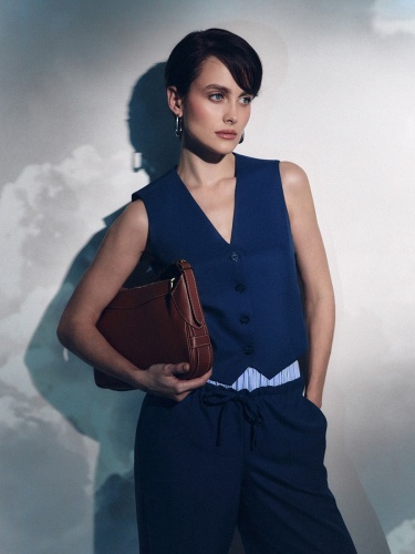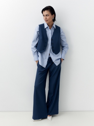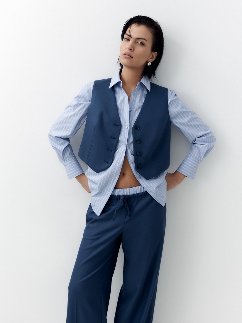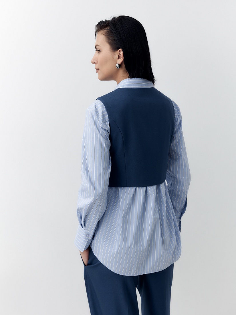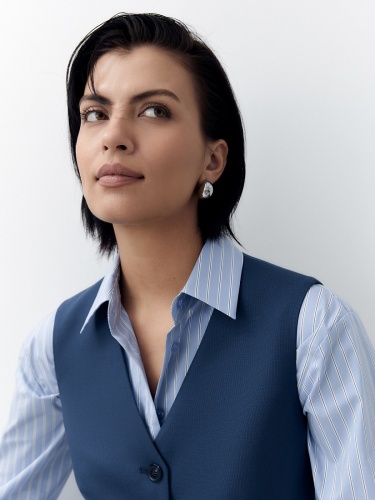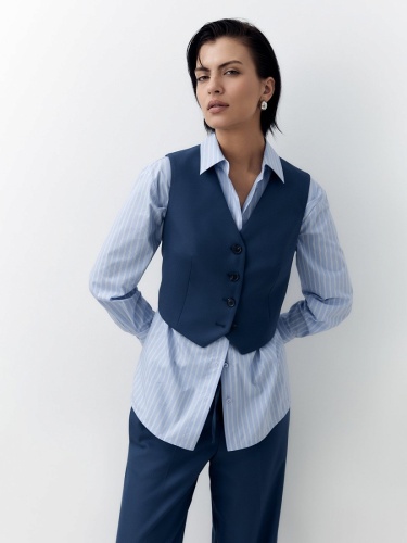 Укороченный приталенный жилет из костюмной ткани с V-образным вырезом в темно синем цвете.